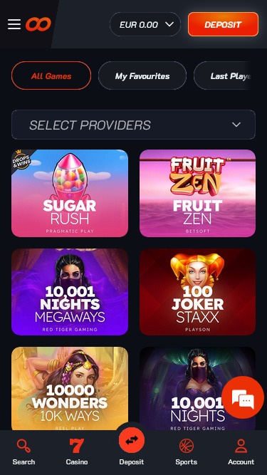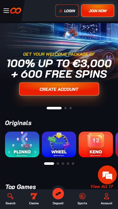 该网站精心打造,我们非常欣赏所有细节和赌场氛围。该平台在深色背景上提供了美观、现代、明亮的蓝色和橙色霓虹灯细节。它看起来绝对令人惊艳,我们第一眼就爱上了WOOM.BET,迫不及待地想去探索它。