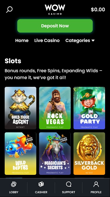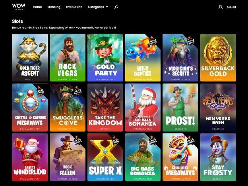 WOW 赌场的老虎机库充满了具有各种主题和功能的高品质视频老虎机游戏。