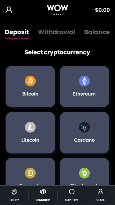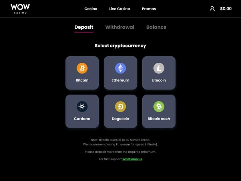 WOW 赌场专门提供加密货币和加密支付方式,因此赌客可以使用世界顶级加密选项体验在线赌博。