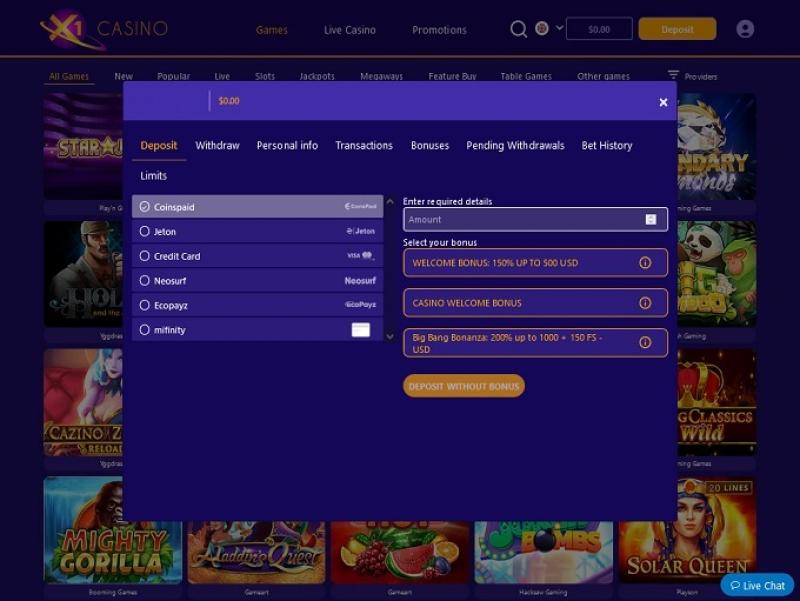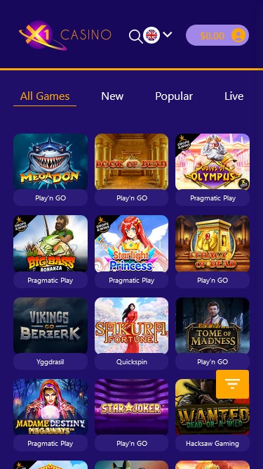 由于在运营在线赌场时,第一印象是维持玩家群的重要组成部分,因此 X1 的运营商确实努力通过设计美观的网站来吸引人们,该网站赏心悦目但又不会太过浮华。