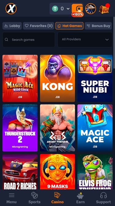 此外,Xyes Casino 还提供简洁而全面的独家游戏列表,以及多款宾果游戏和即时崩溃游戏。这意味着玩家可以在提供的目录中探索广泛的选项,让每个人都能找到自己想要的游戏。