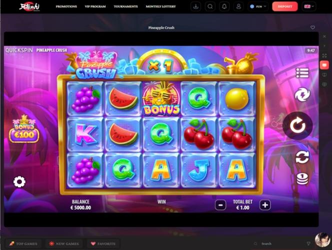 此外,您可以前往网站顶部,在那里您会找到一个水平菜单,可以访问所有游戏、促销、锦标赛、VIP 计划和每月彩票。