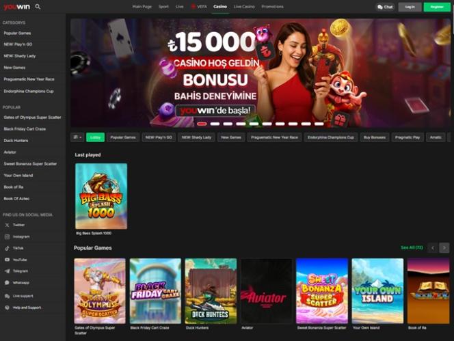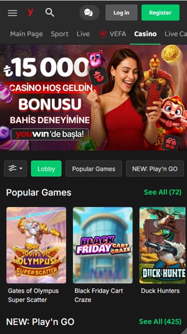 Youwin Casino 由 Microgaming, Net Entertainment, BetSoft, 1x2gaming, Big Time Gaming, Evolution Gaming, Ezugi, lightningboxgames, Play'n GO, playson, Quickspin, Rabcat, Relax Gaming, Thunderkick, Vivo Gaming, Yggdrasil, Betgames, Booming Games, Pragmatic Play, Nolimit City, Red Tiger Gaming, Booongo, LuckyStreak, Xprogaming, Triple Edge Studios, Switch Studios, Dreamtech Gaming, Bulletproof Games, Gluck Games, Gameburger Studios, Pulse 8 Studios, TrueLab Games, 7Mojos, Games Global, NextGen, Push Gaming, Iron Dog Studio, Old Skool Studios, Just For The Win, Reflex Gaming, Slingshot Studios, Jade Rabbit Gaming, 4ThePlayer, AvatarUX, Gamevy, ReelPlay, BB Games, Black Pudding Games, Boomerang Studios, Hacksaw Gaming, Max Win Gaming, Bang Bang Games, Peter And Sons, Aurum Signature Studios and LiveGames提供支持,其游戏通过基于网页的即时游戏平台提供,玩家可以通过互联网浏览器注册、存款并畅玩。此外,该平台还支持移动端游戏,玩家可以通过智能手机或平板电脑畅玩。Baccarat