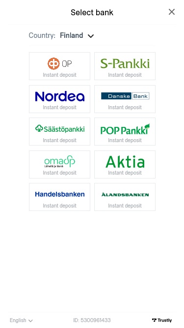 这听起来简直难以置信,但多亏了Trustly ,您可以立即加入赌场,畅玩您喜爱的游戏,无需手动提交个人信息。只需从您的银行账户成功存款,即可开始游戏。最棒的是,只要您点击“提现”,资金就会立即转入您的银行账户。对于大多数银行来说,这只需几分钟即可完成。