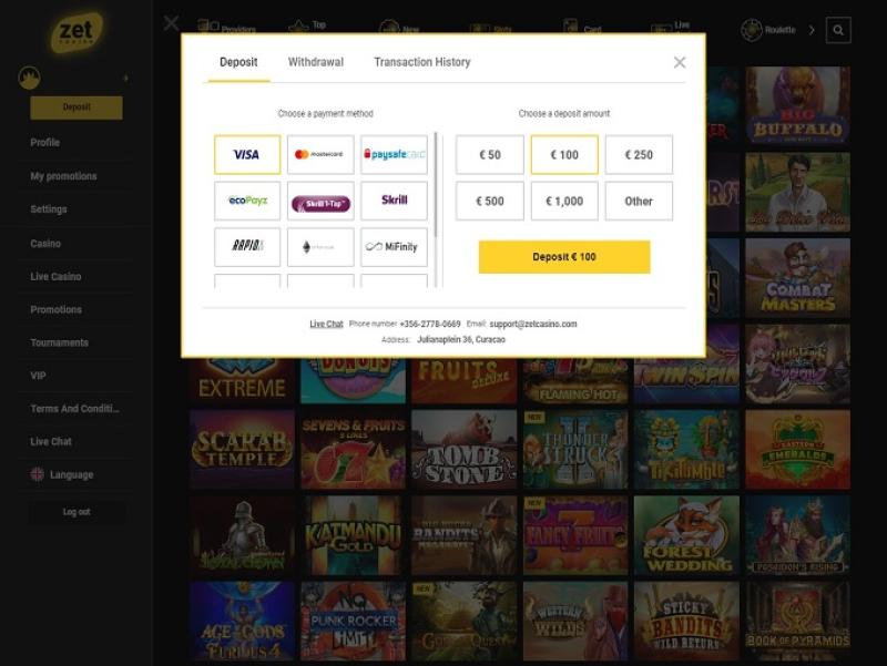 Zet Casino 由 Microgaming, Net Entertainment, Playtech, BetSoft, 1x2gaming, Amatic Industries, Big Time Gaming, ELK Studios, Evolution Gaming, Ezugi, Genesis Gaming, Habanero Systems, Oryx, playson, Quickspin, Relax Gaming, Yggdrasil, Endorphina, Wazdan, GameArt, Betgames, Booming Games, PlayPearls, Stakelogic, Pragmatic Play, Nolimit City, Felt Gaming, Red Tiger Gaming, Booongo, LuckyStreak, Spinomenal, Felix Gaming, Red Rake Gaming, Skillzzgaming, Fugaso, Belatra Games, Fantasma Games, Kalamba, Revolver Gaming, Spin Games, Platipus Gaming, Nucleus Gaming, Skywind, Spadegaming, BGAMING, Northern Lights Gaming, Fazi, Evoplay, Switch Studios, OneTouch, Electric Elephant Games, Pocket Games Soft, Bulletproof Games, All41 Studios, Gluck Games, Mascot Gaming, Gameburger Studios, Pulse 8 Studios, Slot Factory, Neon Valley Studios, Golden Rock Studios, Spearhead Studios, Swintt, Woohoo Games, SpinPlay Games, HungryBear Gaming, Qora Games, SmartSoft Gaming, KA Gaming, Atmosfera, Real Dealer Studios, GONG Gaming, Blue Guru Games, Lady Luck Games, On Air Entertainment, Buck Stakes Entertainment, Caleta Gaming, Creedroomz, Eurasian Gaming, Games Global, Reevo, Amusnet Interactive, Wizard Games, Ash Gaming, bluberi, Blueprint Gaming, CT Interactive, EveryMatrix, GamesOS, Leander Games, Merkur Gaming, Pariplay, Push Gaming, Tom Horn Gaming, Gaming Realms, Cayetano, Gamomat, Mr Slotty, Reel Time Gaming, BF Games, Bally Wulff, Iron Dog Studio, Old Skool Studios, Foxium, Zitro, Just For The Win, Reflex Gaming, PearFiction Studios, Apollo Games, Wild Streak Gaming, Slingshot Studios, Golden Hero, Fortune Factory Studios, Jade Rabbit Gaming, RubyPlay, 4ThePlayer, AvatarUX, Gamevy, Crazy Tooth Studio, NetGaming, High 5 Games, Groove Gaming, ReelPlay, Japan Technicals Games, Alchemy Gaming, Rarestone Gaming, Vibra Gaming, BB Games, Black Pudding Games, Snowborn Games, Boomerang Studios, Hacksaw Gaming, Max Win Gaming, Gold Coin Studios, Bang Bang Games, Gamzix, Half Pixel Studios, Arcadem, Slotmill, Peter And Sons, Aurum Signature Studios, Charismatic, FastSpin, Armadillo Studios, Lucksome Gaming, Gamebeat, Playgon, Area Vegas, RAW iGaming, ELA Games, Bombay Live, Leap Gaming, Kiron, 3 Oaks Gaming, Wishbone Games, Apparat Gaming, PopOK Gaming, Circular Arrow, Print Studios, Gaming Corps, HammerTime Games, BetSolutions, Four Leaf Gaming, INO Games, Nailed It! Games, Atomic Slot Lab, Neko Games, Reel Kingdom, Oros Gaming, Givme Games, Indigo Magic and Live88提供支持,游戏通过网页平台提供,可通过您常用的浏览器加载。该网站还支持移动端游戏,让您在智能手机上畅玩。