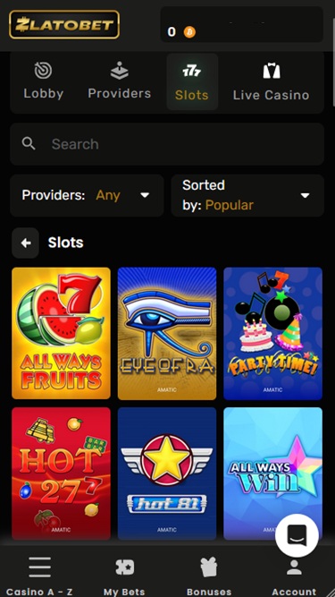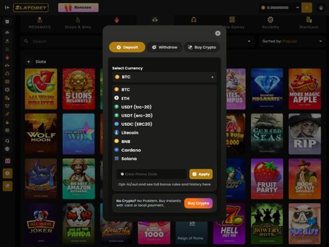 Zlatobet Casino 是一个现代化的赌博网站,接受来自全球各个国家的玩家,并通过向他们提供全面的赌场游戏(如真人荷官、真钱老虎机、桌面游戏、即时崩溃游戏、宾果游戏和刮刮卡)来邀请他们加入其中享受乐趣,同时允许他们使用比特币和以太坊等多种加密货币来管理他们的资金。