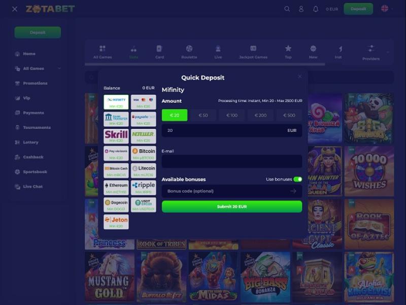 访客可能会喜欢这家赌场提供的丰富游戏库、诱人的促销优惠、会员计划等等。值得一提的是,ZotaBet 也是一家体育博彩运营商,因此玩家可以在体育博彩板块享受到精彩的赛事和投注机会。