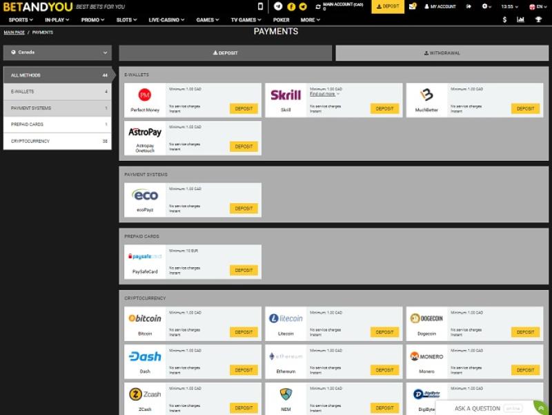 在寻找理想的体育博彩网站时,您必须了解有哪些银行选项可供选择。幸运的是,Betandyou 提供了丰富的付款方式供您存取资金,其中包括多种信用卡、借记卡、电子钱包,甚至还有现代加密货币选项。