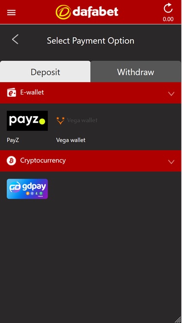Dafabet 为玩家提供多种现代和传统支付方式,包括存款和取款,包括信用卡、借记卡、预付卡、银行电汇和电子钱包。该品牌还接受多种加密货币,因此那些喜欢更匿名、更安全的支付方式的玩家会感到满意。