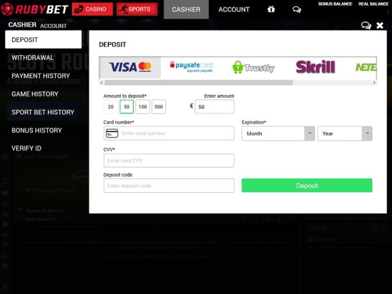 以下是在 2 种红利奖⾦ 适⽤的 RubyBet Casino.