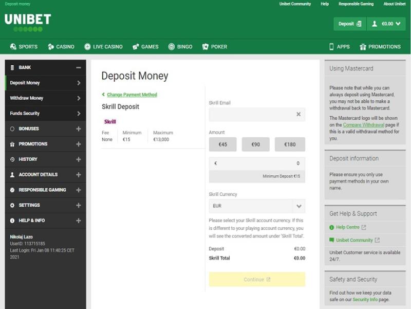 Unibet 为玩家提供多种银行支付方式,包括 Neteller、Skill、Visa、Mastercard、Paysafe Card 等。该网站会在 12 小时内支付电子钱包款项,而其他支付方式则可能需要更长时间。Unibet 的赔付流程可靠,因此您提交申请后很快就能收到款项。