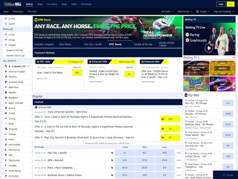 威廉希尔的体育博彩非常可靠,涵盖所有主流体育项目。包括赛马、足球、澳式足球、美式足球、篮球等等。此外,还提供单注、过关投注和现场投注选项。