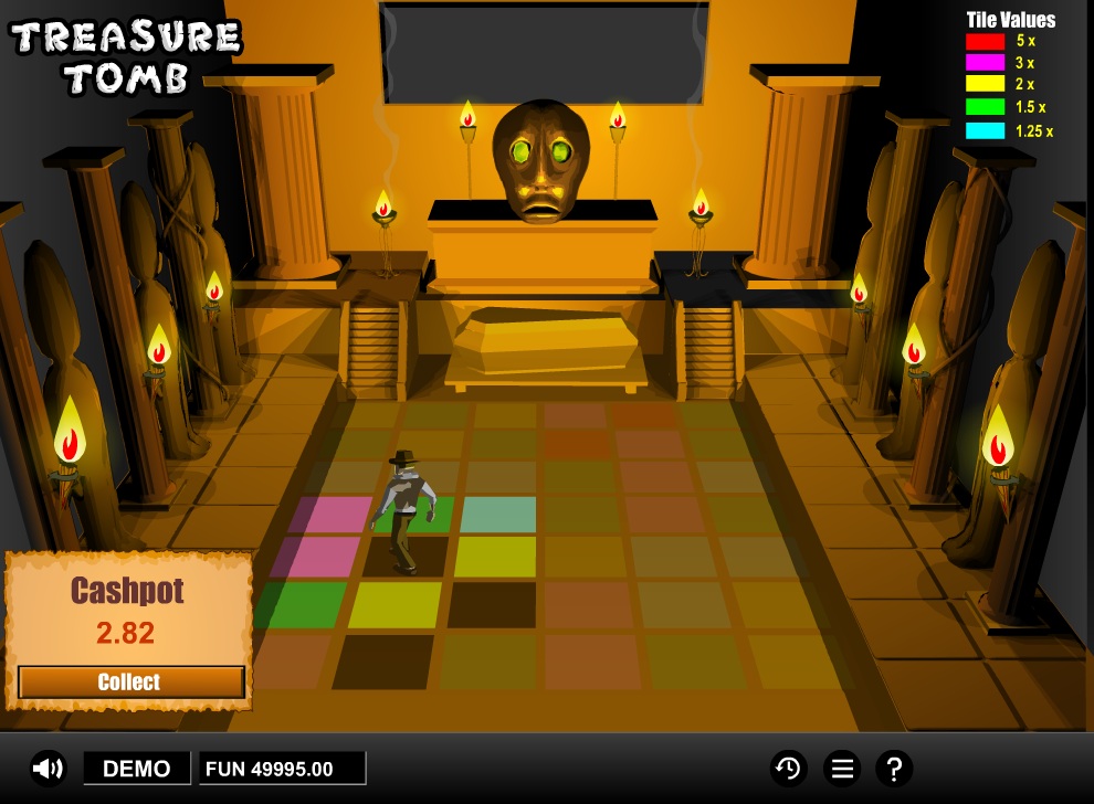 宝藏古墓是一款简单的碰运气游戏。就像《夺宝奇兵》电影里一样,玩家的目标是穿过一条走廊,每走一步要么获得更多财富,要么面临死亡。游戏中有各种各样的死亡方式,所以游戏设计师和艺术家的创造力值得称赞。根据我的分析,赌场优势为5.21%。