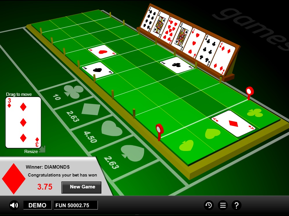 据我所知,这是1X2的另一个独特游戏。它是一款赛车游戏,四张A牌根据从剩余48张牌中抽出的花色,向终点线前进,直到决出胜负。玩家可以选择在比赛前弃掉七张牌,这些牌会向玩家展示。如果玩家选择不弃掉这些牌,那么所有四种花色的预期回报率为93.75%。如果玩家选择展示前七张牌,那么回报率将在50.71%到97.26%之间,具体取决于下注金额和弃掉的花色分布。
