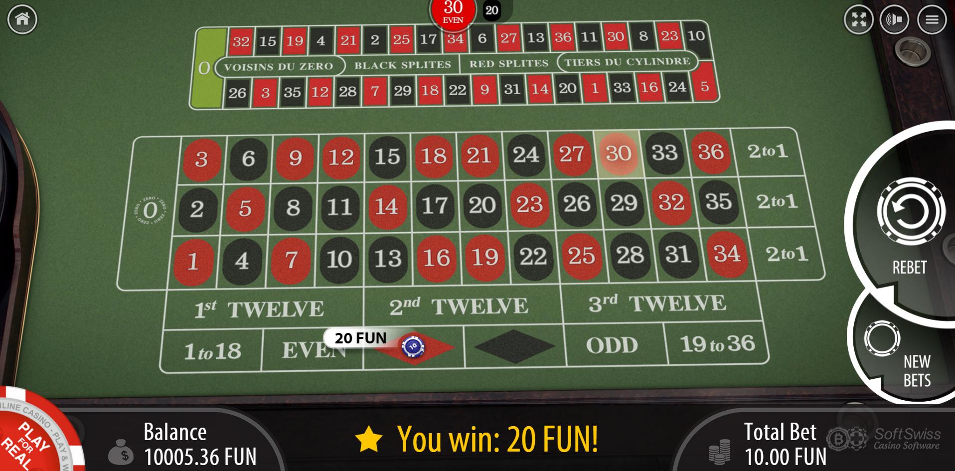 SOFTSWISS 遵循Let it Ride 的常规赔付表,赔率为 1、2、3、4、5、8、11、20、200、1000,赌场优势为 3.51%。此外,还有一个附加投注,赔付表为 6、9、25、50、75、100、2000、20000,我计算得出赌场优势为 6.14%。