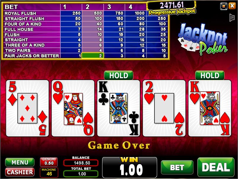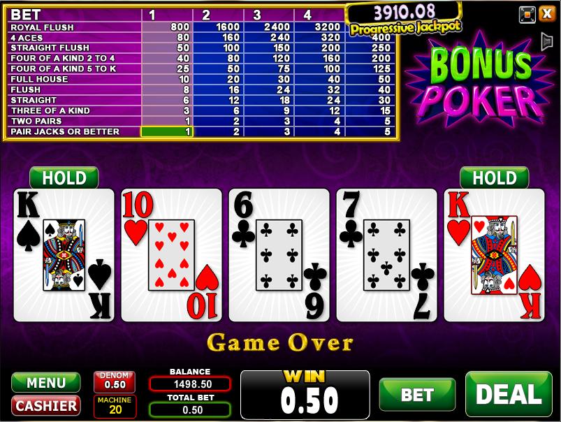 累积奖金扑克是“Jacks or Better”的累进形式。要计算任何给定累积奖金规模的回报率,请取94.97%加上每5,000枚硬币的2.49%。盈亏平衡点是14,111枚硬币。