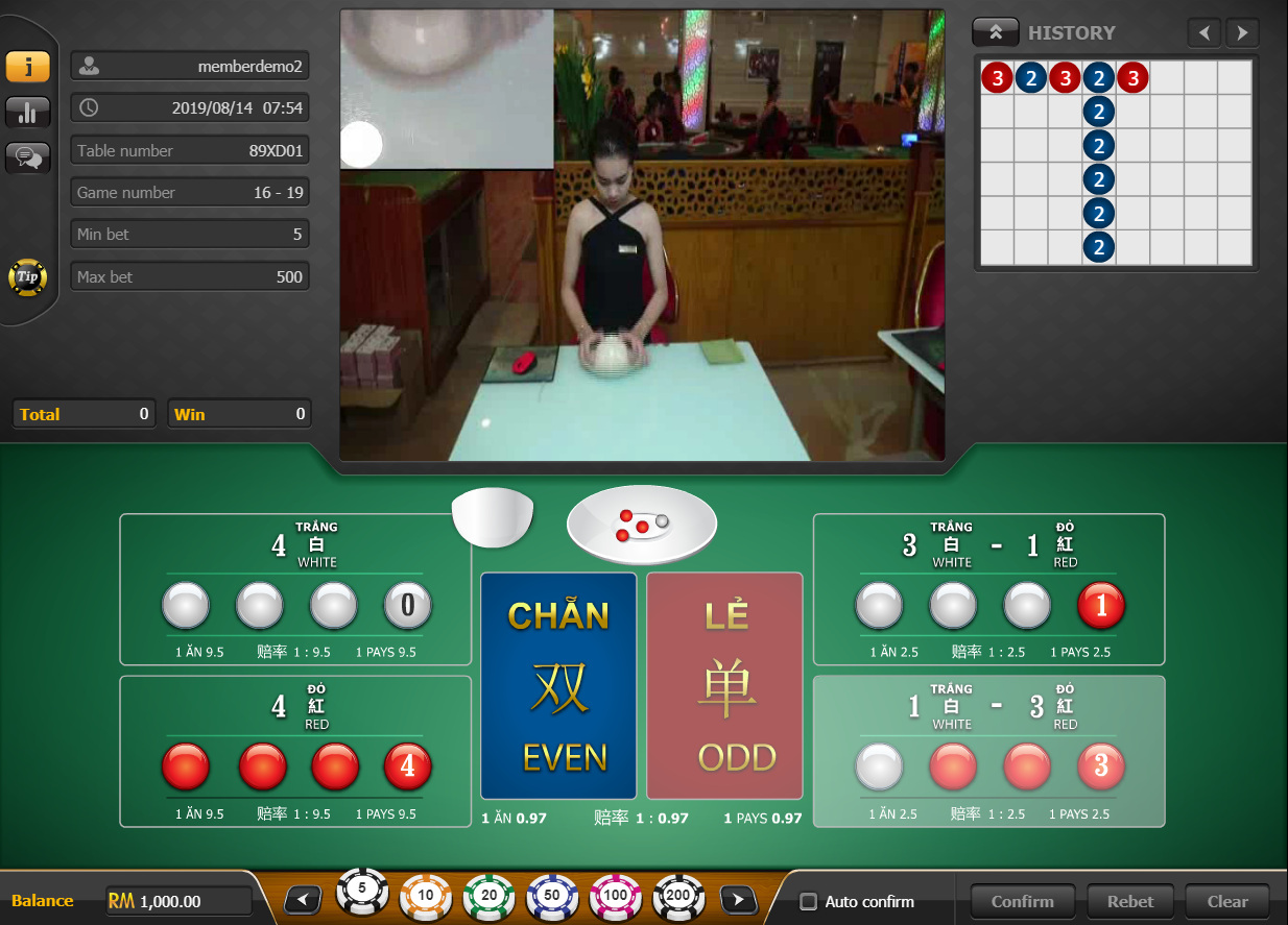 Asia Live Tech 是少数提供番摊游戏的品牌之一。从截图来看,投注似乎是基于某个真实赌场的赌桌。所有投注方式看起来都很标准。
