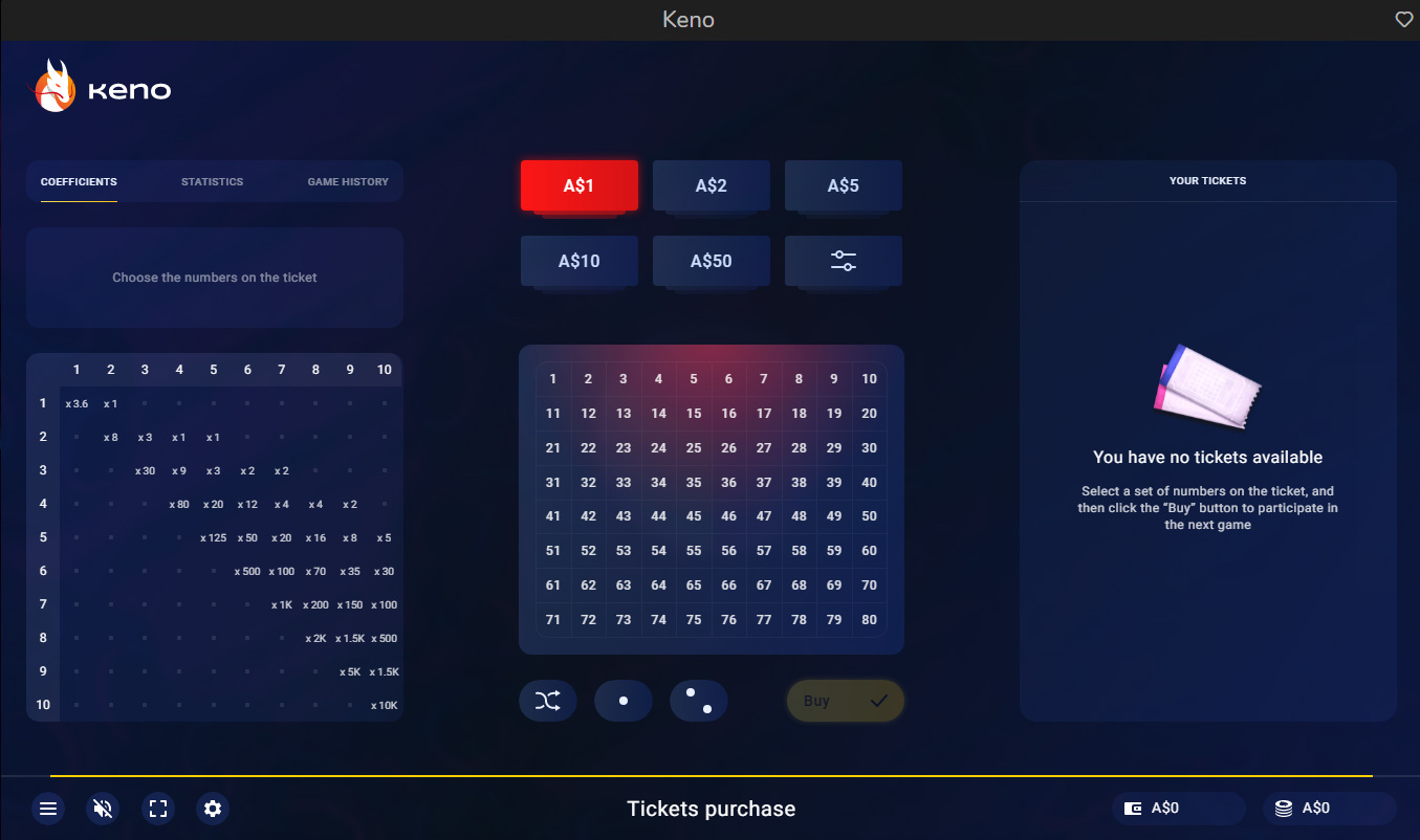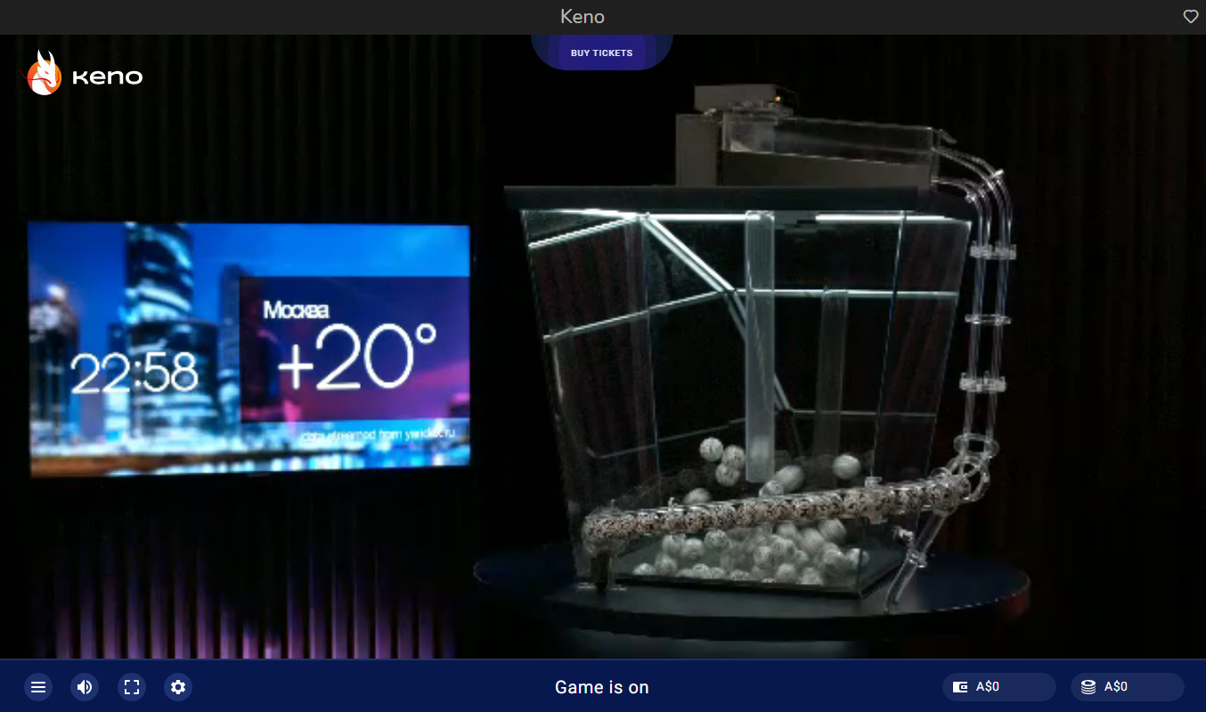 Atmosfera 提供一款符合标准规则的基诺游戏。赔率表略低,预期回报率在 82.14% 到 86.08% 之间。