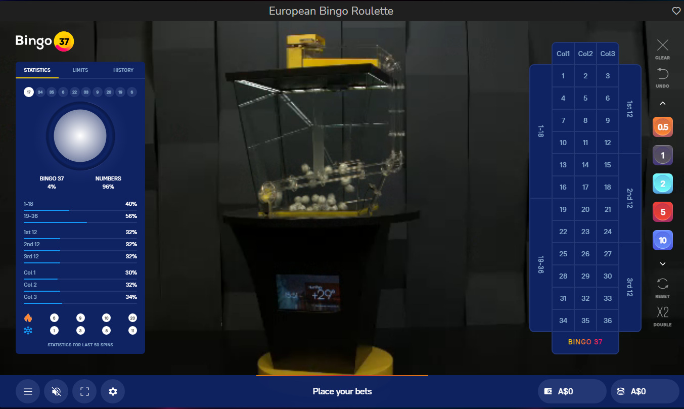 - 欧洲宾果轮盘赌(European Bingo Roulette)——玩法是从37个自动球斗中抽取一个球。赌场优势为2.70%。