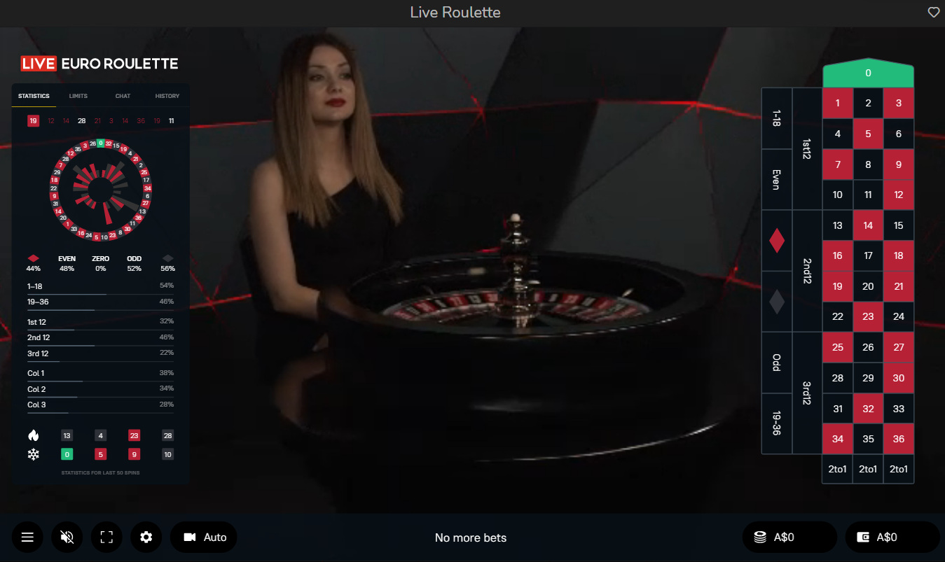 - 真人轮盘赌——此版本由真人荷官在单零轮盘上进行游戏。赌场优势为 2.70%。