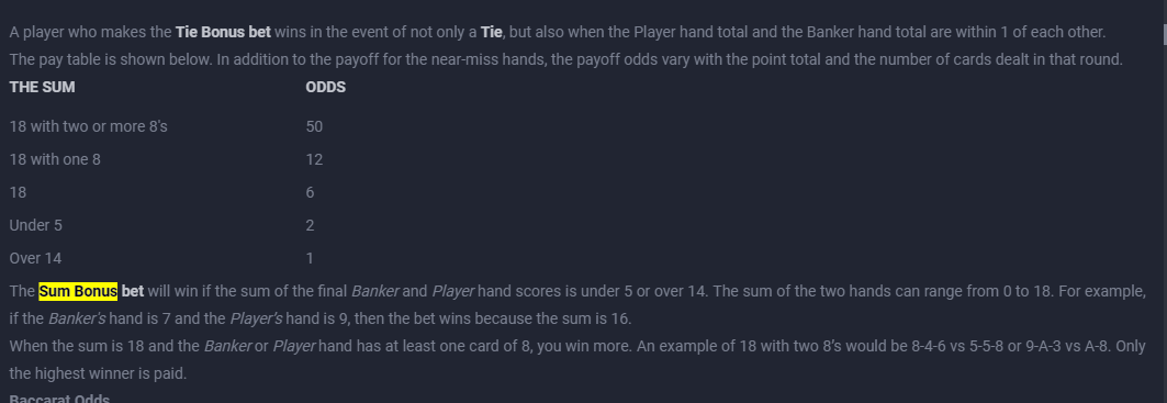 - 完美对子:赔付 26,庄家优势为 9.68%。