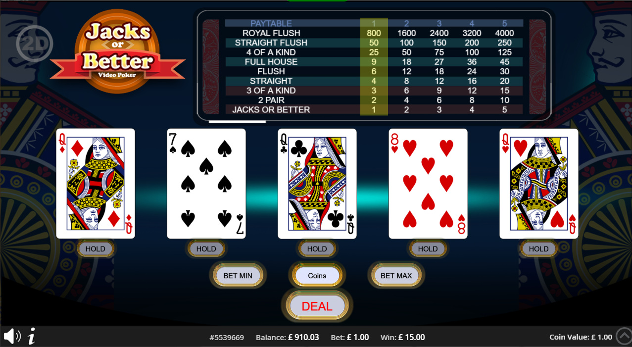 唯一的视频扑克游戏是9-6 Jacks or Better,回报率高达99.54%,并且采用了最佳策略。我不喜欢他们使用自行车牌的方式,我确信这侵犯了商标权。