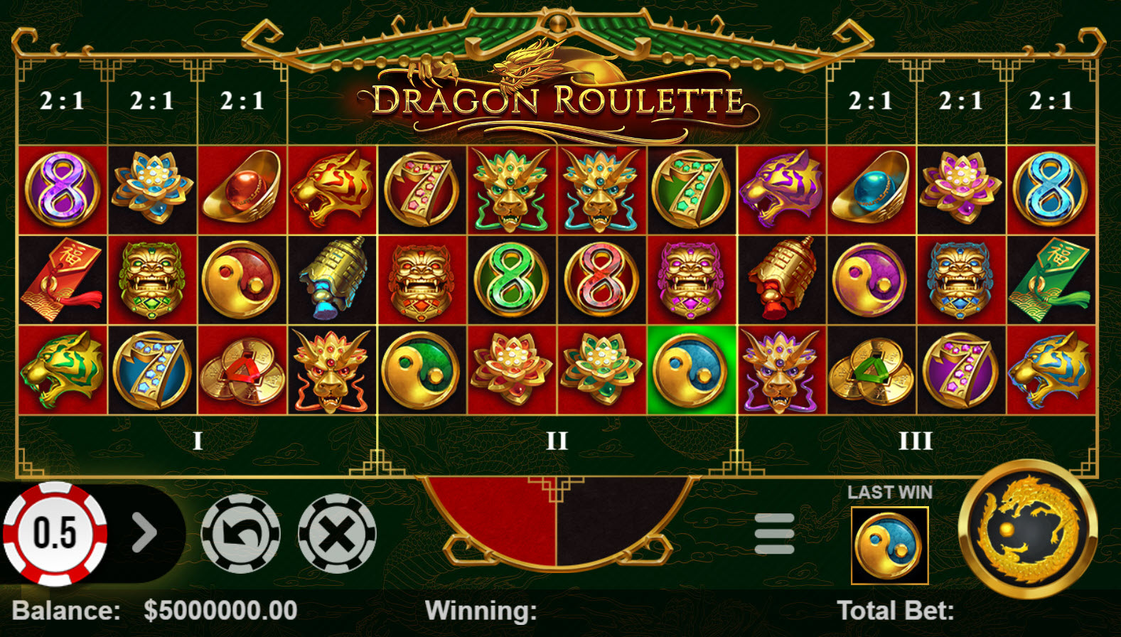 Elysium 将轮盘游戏命名为“龙轮盘”。该游戏由一个 38 个符号组成的轮盘组成,从数学上讲,它与美式双零轮盘相同。
