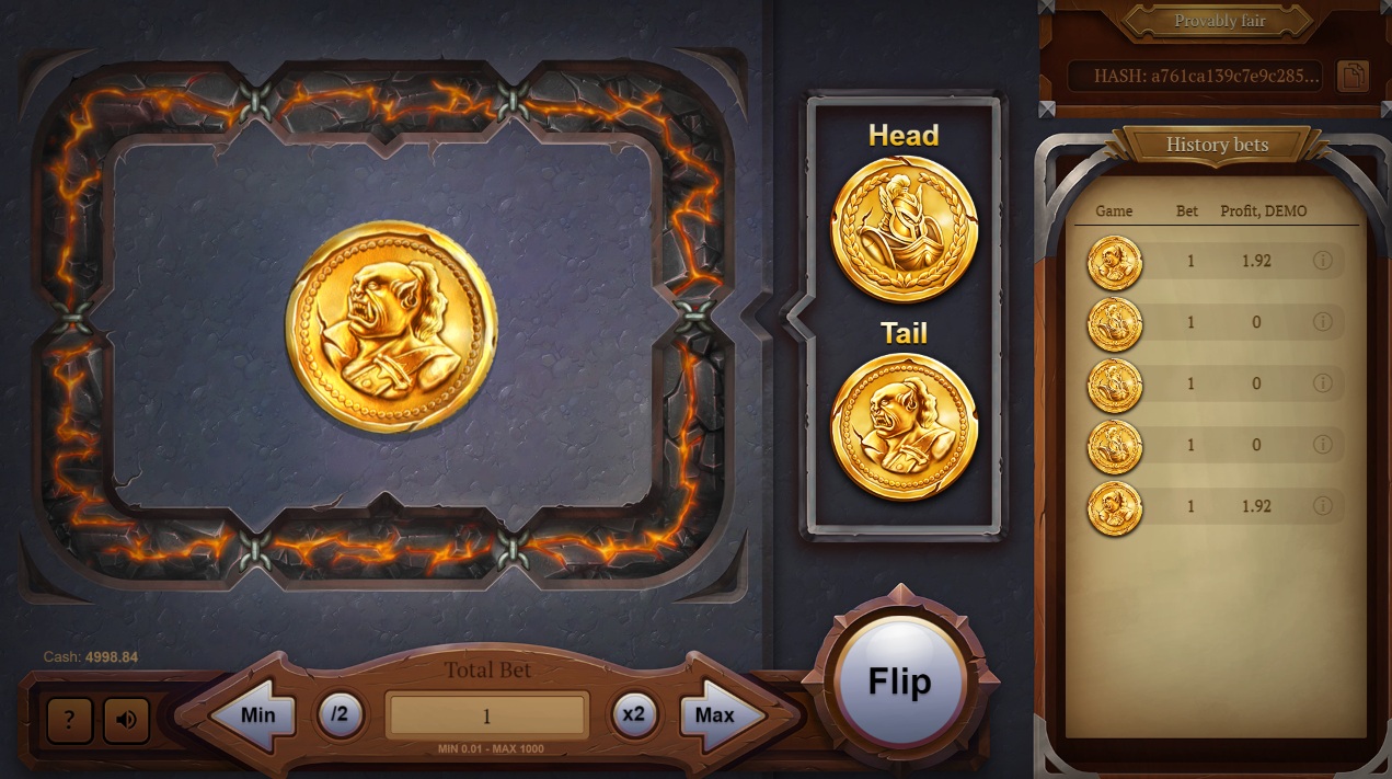 这是一款基于抛硬币的简单游戏。赢1次赔付1.96,预期回报率为98%。