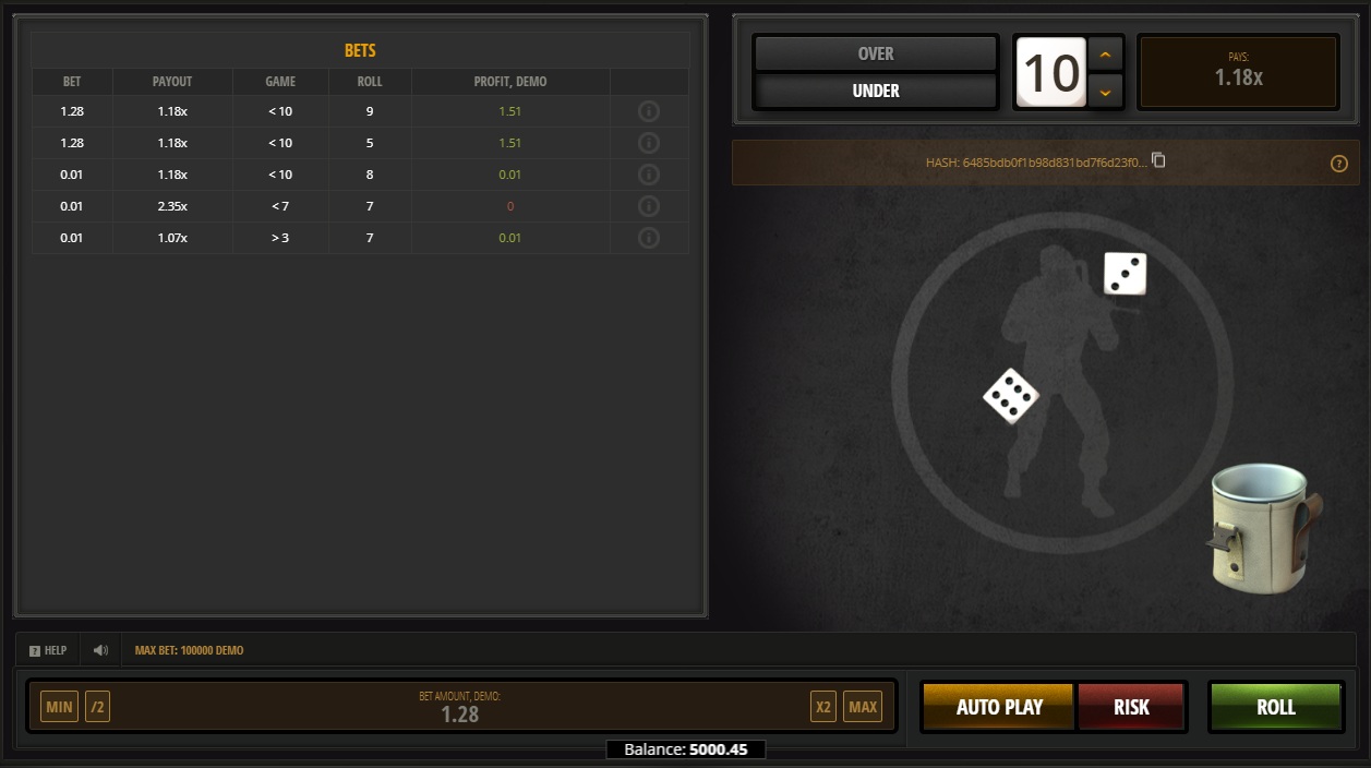 掷骰子是一款简单的运气游戏,赌两颗骰子的总点数是大于还是小于玩家选择的某个数字。与 Evoplay 其他“即开型游戏”(通常回报率为 96%)不同,这款游戏的回报率高达 98.33%(投注 10 点以下和 4 点以上)。更多详情,请参阅我的“掷骰子”页面。