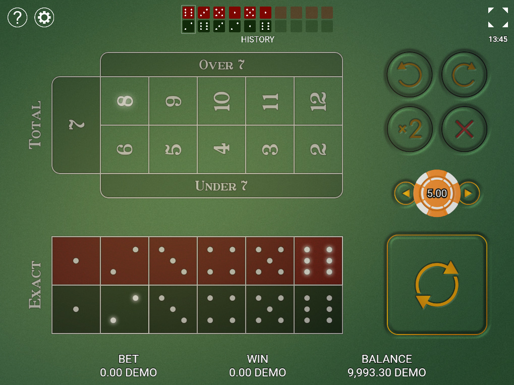 泰坦骰子是一款简单的游戏,只需掷两个骰子(一个红色,一个黑色)。玩家可以押注特定骰子的总点数或结果。下表显示了对总点数的押注。赢奖以“一注”计算。