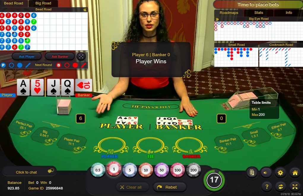这款百家乐游戏的投注方式与上文提到的“真人百家乐”完全相同。不同之处在于,这款游戏的发牌平台是真正的赌场,玩家可以参与其中。这家赌场是位于柬埔寨的Queenco赌场。