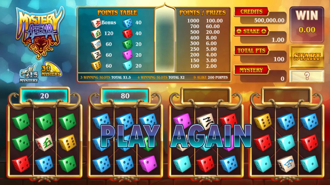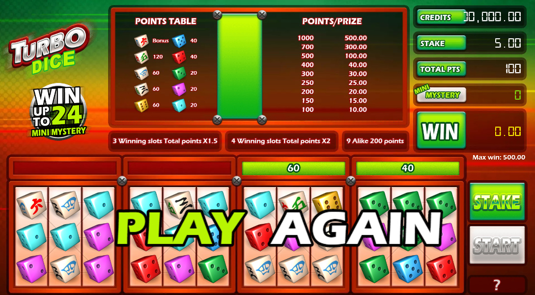 Gaming1 有几种“骰子游戏”。这些游戏需要掷 3 个骰子,每次掷 12 次。玩家可以选择四个 3x3 的格子,将每次掷出的骰子放入其中。填满一个格子后,如果任何一行或对角线上出现三个相同的符号,玩家就获胜。