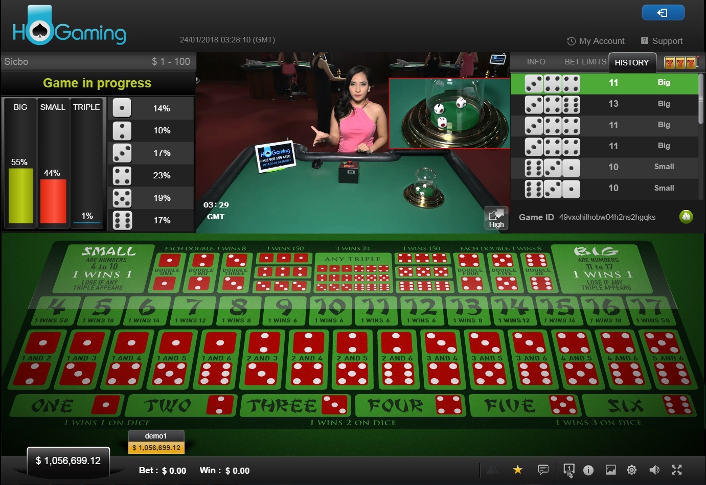 我必须特别注意骰宝游戏的糟糕赔率,赌场优势高达47.22%。这简直是犯罪。要么是HoGaming对目前的赔付一无所知,要么就是对玩家非常吝啬。
