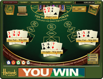 平局获胜规则带来了一个有趣的策略变化。如果三张牌的花色都不同,玩家应该在Q63上加注。更多信息请访问我的“三张牌扑克”专栏。