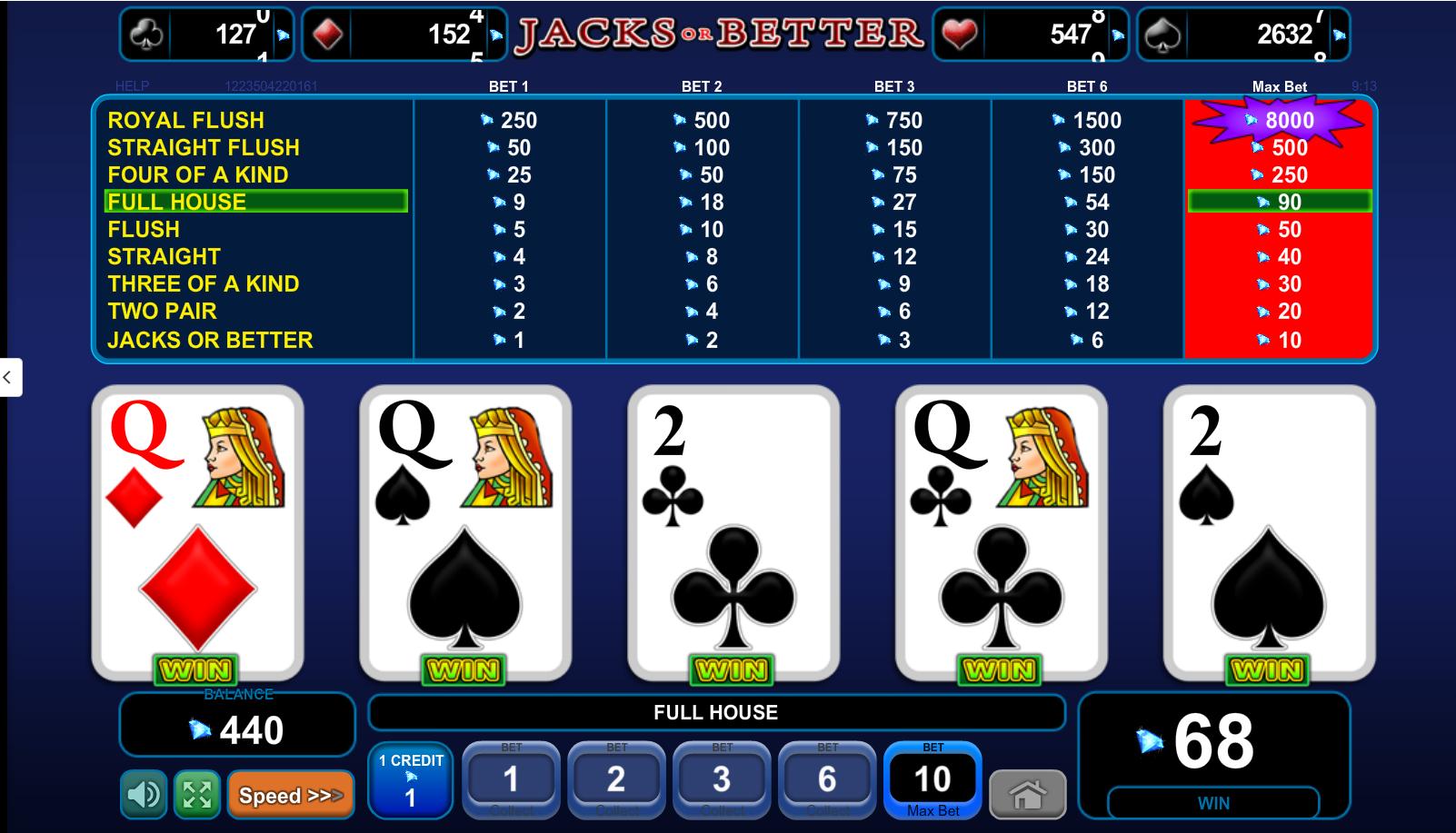 Jacks or Better #1 | 97.76% | 否 | 1-2-3-4-6-8-26-50-400 | 否 |