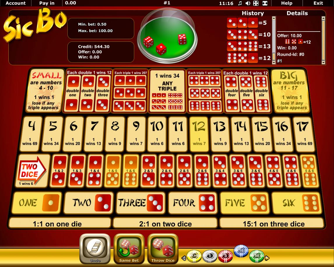 Novomatic骰宝游戏的赔率高于平均水平。下表显示了每种投注的赔率、中奖概率以及赌场优势。