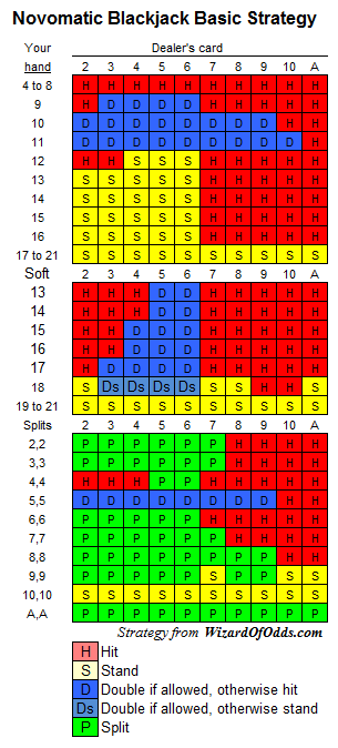 以下是适用于四到八副牌的基本策略。点击图片可查看大图。