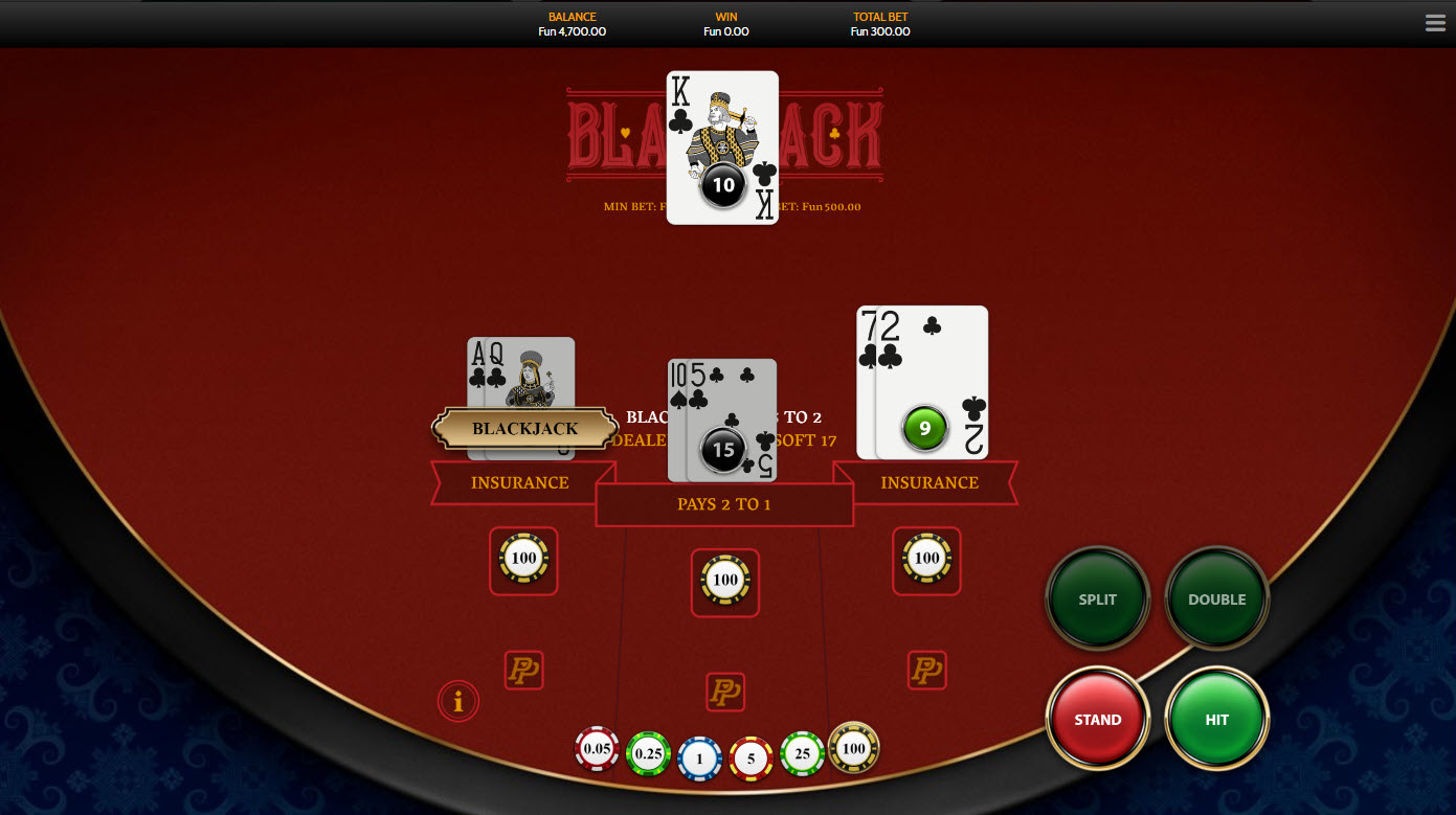 - 当玩家有三张或更好的牌时,允许庄家投保资格保险。