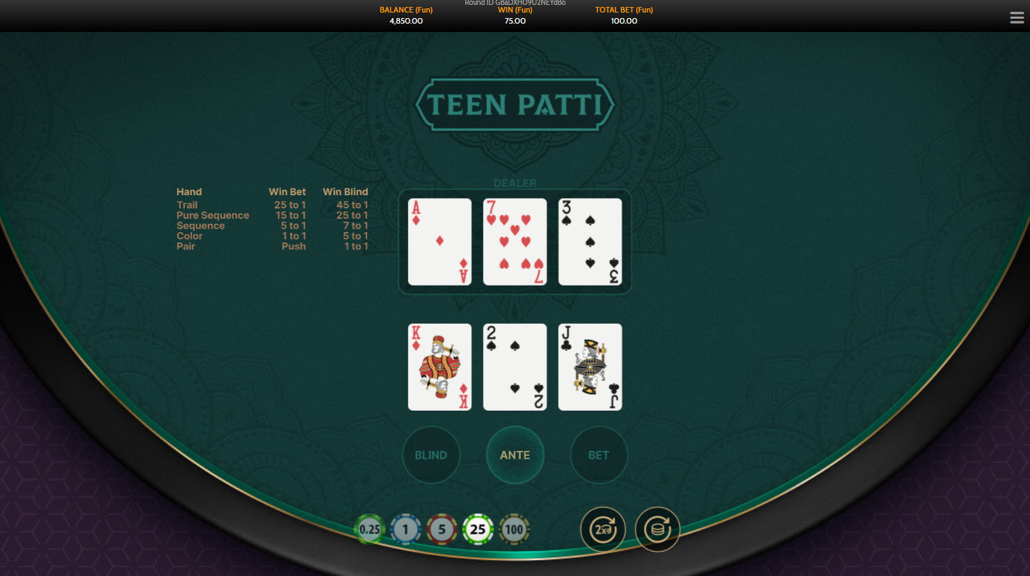 Teen Patti 是一款简单的游戏,玩家押注两手三张牌中哪一手牌的牌值更高。当然,也有一些边注。我之前从未见过这款游戏,所以专门创建了一个页面。所有规则和分析,请参阅我的Teen Patti 20-20页面。