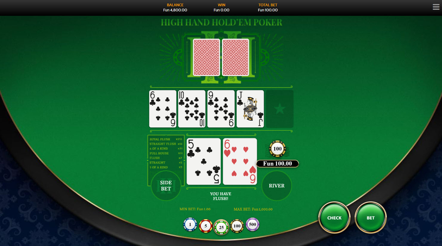 OneTouch 提供德州扑克奖金游戏,名为 Hold 'Em Poker 和 High Hand Hold 'Em。我更喜欢用游戏的原名来称呼它们。这些游戏遵循拉斯维加斯的宽松规则,需要顺子或更好的牌才能在 Ante 上获胜,赌场优势为 2.04%,风险因素为 0.53%。