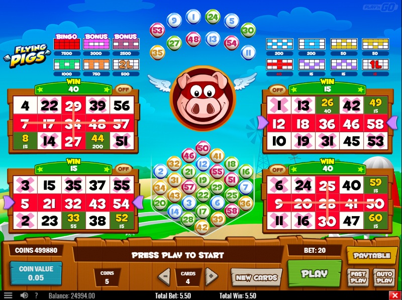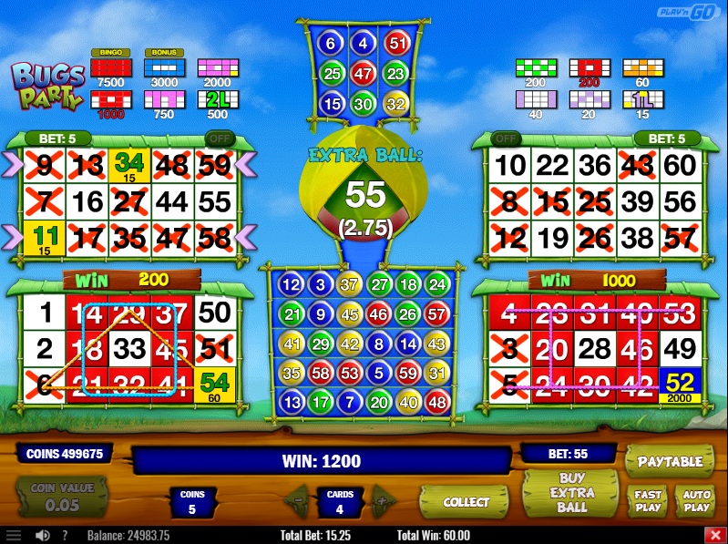 有两种类似的宾果游戏。它们都使用3x5的牌。如果你距离大奖只差一个,它们都提供购买大量额外球的选项。它们还都提供覆盖复杂图案的奖励游戏。帮助文件显示,这两款游戏的回报率均为96%。