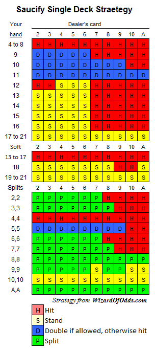 最佳规则是“单副牌”游戏,其庄家优势为0.23%。该游戏的基本策略如下。