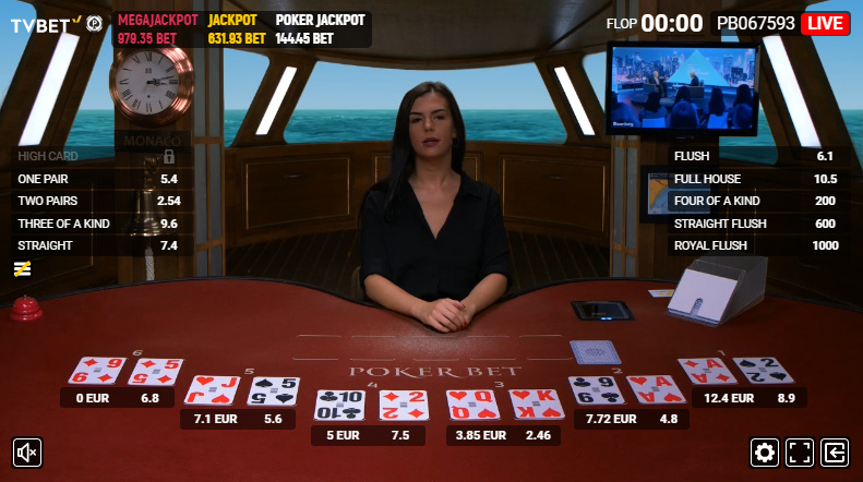 扑克是一种自动六人扑克游戏,无需下注或弃牌。玩家可以在游戏的不同阶段对哪位玩家获胜以及获胜牌型进行下注。有关所有规则和分析,请参阅我的TvBet 扑克页面。