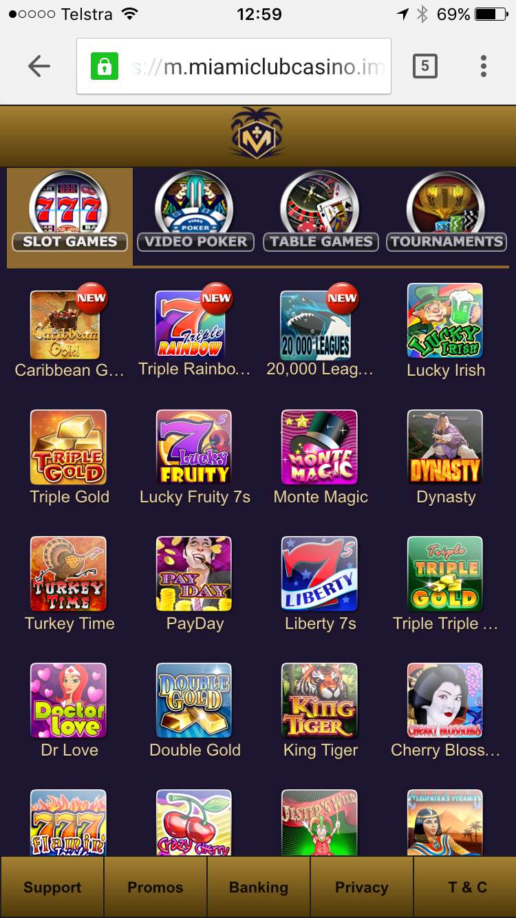 另一个可以享受“赔率奇才”广告保证的赌场是迈阿密俱乐部赌场 (Miami Club Casino) 。同样,移动设备上无法像电脑那样提供所有游戏。例如,在“赌桌游戏”下,似乎只有六款游戏,包括四种版本的二十一点,而且不知何故,他们还包含基诺游戏,而我认为基诺游戏不属于赌桌游戏。迈阿密俱乐部网站上的游戏数量是其三倍多。